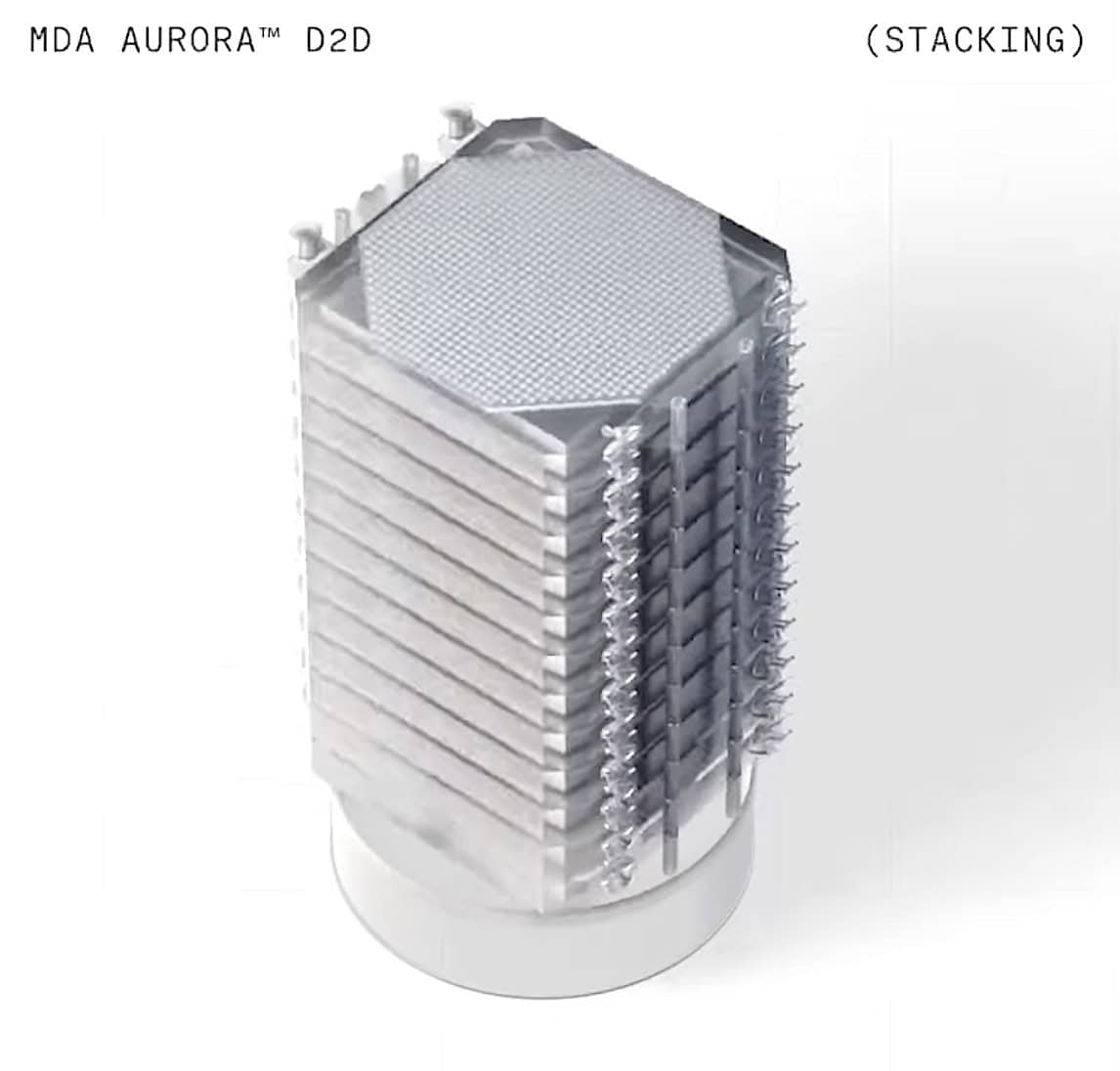 MDA Aurora D2D product, stacked for launch. Credit: MDA Space
