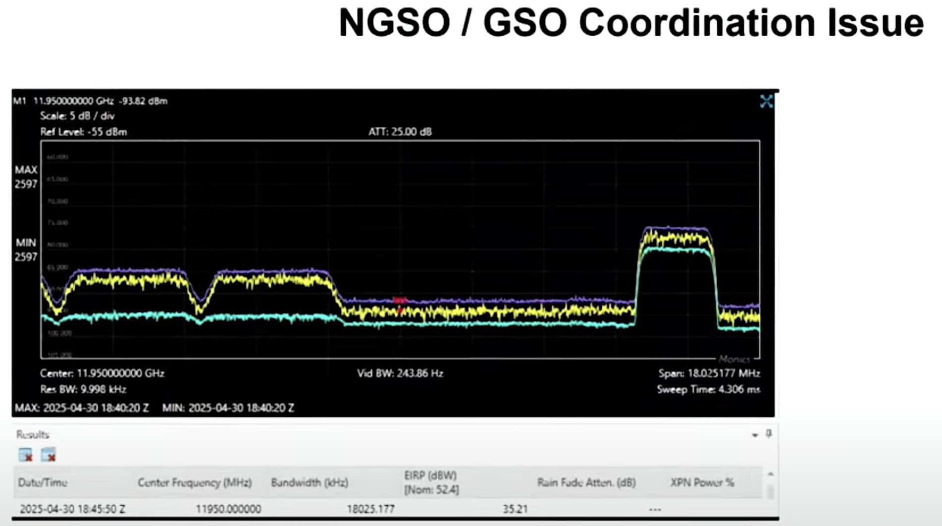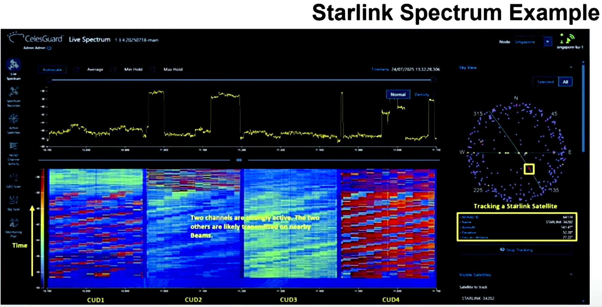“So far, so good, but then: Wow. A Starlink satellite went through and we have OneWeb and Starlink using the exact same channel at the same time.