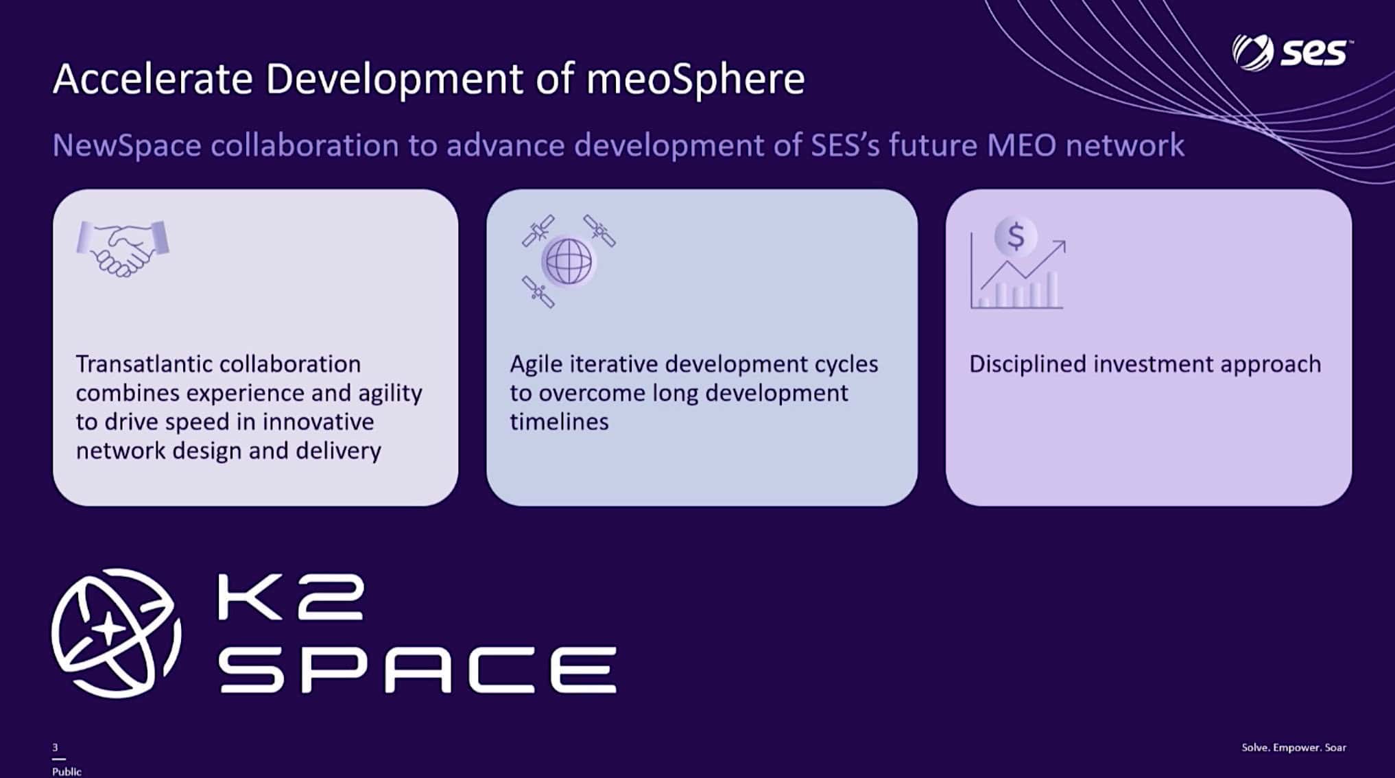 On Sept. 16, SES announced it had contracted with startup large-satellite manufacturer K2 Space Corp. of California to build and launch several pathfinder satellites to prove out technologies to be integrated into the future MEO constellation.