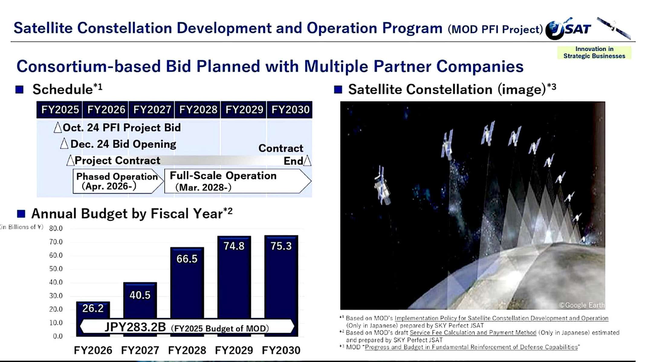 He said a bidding process for the military satellite constellation to be run as a Private Finance Initiative (PFI) is expected in October, with bids to be opened in December. MHI is preparing a bid that will include a consortium of multiple companies.