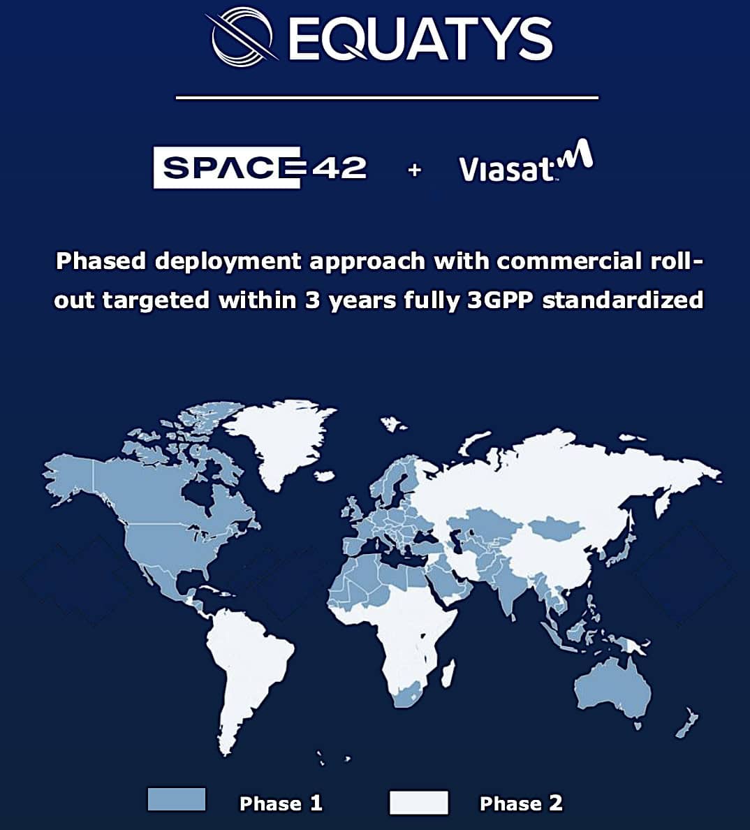 Equatys was described by Viasat and Space42 as a 50-50 joint venture. Viasat has not announced any equivalent investment amounts in the business. Whether Viasat would provide satellites for the Equatys constellation, or at least payloads for it, is uncertain.