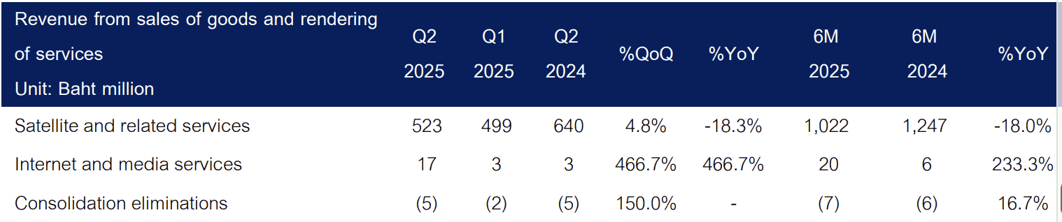 For the six months ending June 30, Thaicom reported 1.02 billion baht in satellite and related services revenue, down 18% from a year ago.