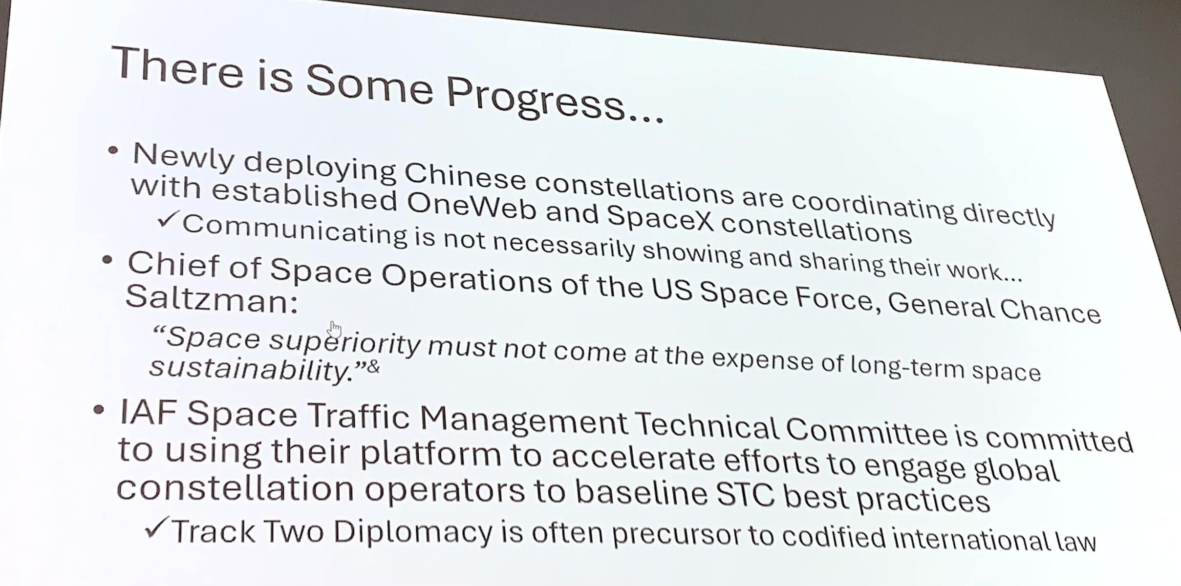 McKnight said OneWeb and Starlink were both contacted by a Chinese constellation operator to talk about future maneuvers. “So there is some progress,” he said.