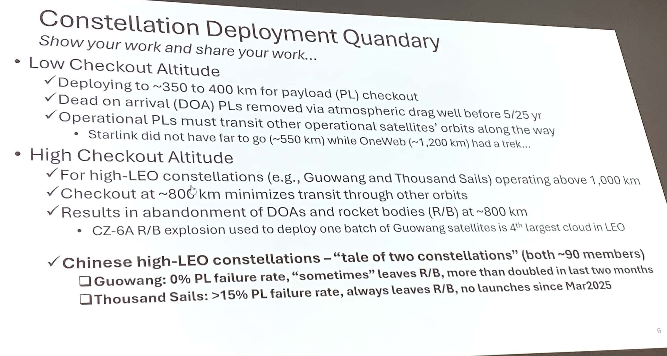 Thousand Sails, on the other hand… “More than a 50% failure rate. Other constellations, when they first got deployed, had failure rates close that. But this is at 800 km and they leave the rocket body.